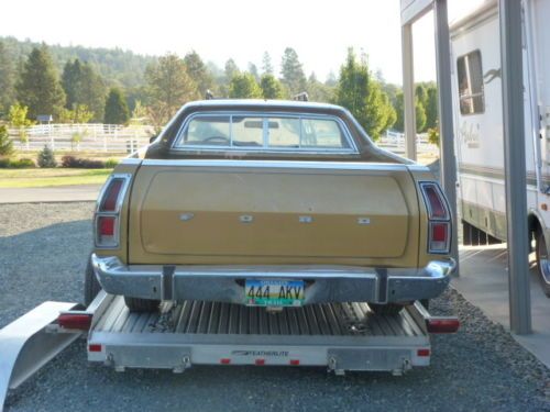 Body is solid. Rear sliding window. Last licensed in 2011. There is an extra engine with Edelbrock aluminum intake and Edelbrock four barrel which can be purchased separately by the buyer of the Ranchero, if desired. For any questions, please call Ron at 541-476-3030 or cell: 541-295-5055 before bidding.