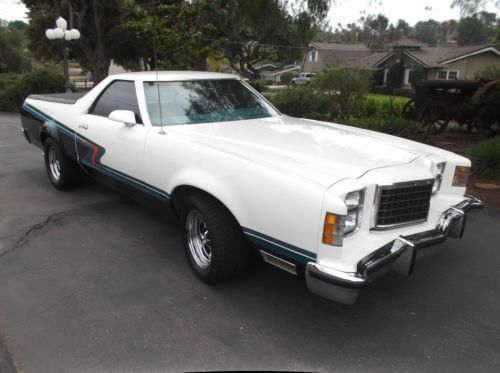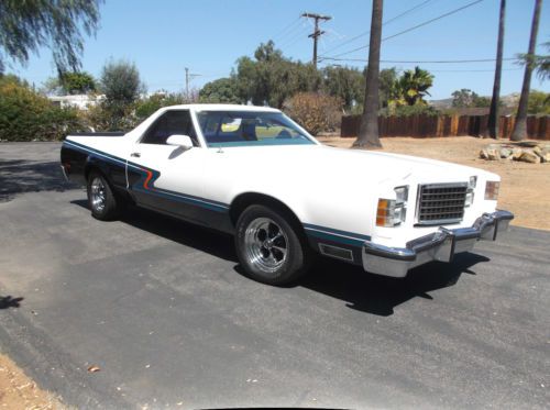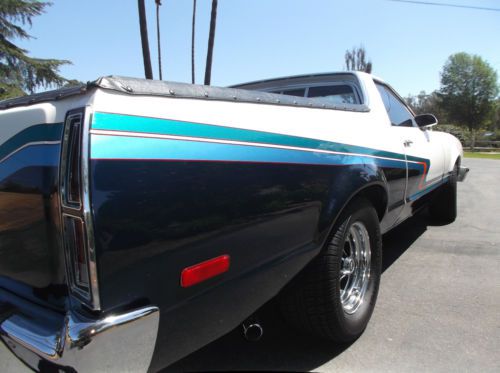 1979 Ford Ranchero 500 Brougham A beautiful low mile one of a kind 80's time capsule. Numerious modifications including, gorgious custom paint, tonnue cover, keystone Classic wheels with new tires, sliding rear window, receiver hitch, dual exhaust, rear air shocks, dual power side mirrors, aftermarket period correct cassette tape player, power antenna and bed mat. Ca car garaged most of it's life with no rust. Runs and drives as a 58 thousand mile Ranchero should. All the gauges, lights and power accesories are operational. Other than some fading on the carpet the interior is in exceptional condition. Ice cold Air Conditioning. New 295/50R15 rear and 265/50R15 front tires. new front shocks and brakes. Clear CA title with current registration. Please contact me thru Ebay with any questions. Thank you!