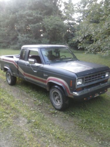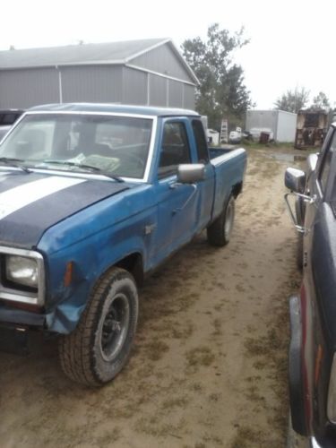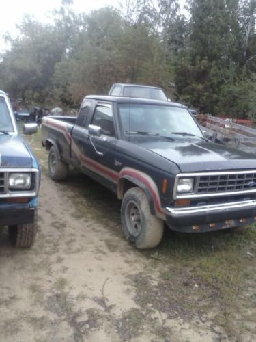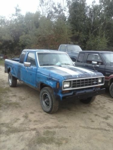 Hello. you are looking at a package deal on two Ford Ranger extended cab 4X4 trucks. One is a 1987, the other a 1988. They are both identical trucks, Both run good with the 2.9L V6 engines and both have the 5 speed manual transmissions. I had bought the 1988 (the grey silver) truck first, and what it needs to be functional is a transmission. When you let out the clutch, it grinds really bad, sounds like a bad bearing. The drivers side of the box is caved in on it. Other than these issues, the truck runs really nice. Its a very clean solid truck for the age. I also have included in the auction but not pictured a stepside box from a newer later 90s style Ranger that I was going to put on this truck and paint it. With a bit of TLC, youd have one nice clean older truck that would make a fine driver for a long time. The other truck, the blue one is a 1987 That is really rusty and ruff. It runs and drives good, and was recently tuned up . I am driving this truck back and forth to work everyday, and it drives fine. Everything works on it, except the heater core is bad. I have a brand new heater core that goes with it. I had origionally bought the 1987 to use as a parts truck for the 1988, to take the trans out, and make one nice truck out of the two. WHen I drove the 1987 home It drove so nice, I figgured why part it down, so, I decided to put it on the road and run it for a while. The 1987 truck is quite ruff, The body is shot on it, the frame has a crack in it, but there is a patch welded over it, the windshield is good, and it runs and goes down the road rather well. The doors dont open or shut very well. There is a 1988 Factory Manual that goes with both trucks, a Chiltons book, and a Haynes book with the 2. Also new heater core, and a new set of front and rear shoes as well. So, In this auction you get a 1988 Ford Ranger extended cab 4X4 that just needs a transmission to be driveable, a 1987 Ford Ranger 4X4 thats ruff but can be driven as is, and a stepside box from a late 90s Ranger as well as some repair manuals, and a few spare goodies. There is a lot to work with here. If you have any questions, please call or text Chris at 810-656-7496. My starting bid is my lowest price I will take for the pair. I will not separate, it all goes as one lot. I have both trucks for sale locally and I reserve the right to end the auction early. Both trucks have clear Michigan titles. Payment in full is due within 7 days of auction end, no exceptions. I will continue to drive the 1987 Ranger untill auction has ended. Buyer has 90 Days to pick up the trucks after auction end. If you pay by check or Money order, Trucks are not to leave untill the check or money order clears my bank. You are buying both as is. Trucks are in Silverwood, Mi. 48760. An hour and a half north of Detroit. Thanks for looking, please see my other auctions. No sales outside the USA please God Bless.