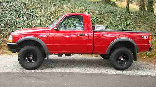 This1998 Ford Ranger originated here in Western North Carolina. Purchased locally and owned by an elderly gentleman since new. I have had it for about a year. The miles are absolutely original and proven by NC Inspection Records and Carfax. The driver seat had a hole in it so I had both seats professionally reupholstered. I also had more padding placed in the seats for longlife wear. They were originally tan colored. These are the original seats just reupholstered. Recent entire clutch replacement (everything) to include new shocks. I had a 2" Leveling kit installed and placed those nice Kelly tires on it to give this ranger more ground clearence and a more aggressive appearence. The truck is very dependable has never let me down once. The transmission is strong and smooth and the 4X4 works perfectly. No oil leaks, no smoke and it drives like a truck with 50K miles on it. The engine compartment is clean. The interior is basically spotless. No cracks, rips or tears. Power steering and excellent brakes. The tires have probably less than 300 miles on them. The rims are after market to accomadate the larger tires. There is a good spare mounted underneath.