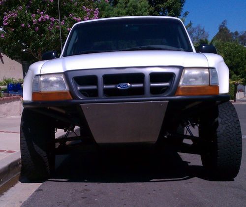 I bought the ranger 4 years ago. I took it to Dezert Nation to get the entire truck done up pre-runner style. I race class 7's with Anderson Racing and I wanted to slowly build a chase truck for my son. Well, Dezert Nation closed down and one of his fabricators took the truck home and finished the front end as a side job. My daughter drove it around for a while and we started having problems with the Trani. That's when my wife freaked out and said no more. She doesn't want my daughter driving a truck. I've put over 15K into the truck and right now It's at the shop waiting for a new transmission (AMCO). So once it comes out of AMCO it's pretty much going to be brand new from the inside. Saddleback Performance installed the crate motor has worked on all mechanical replacements. I have receipts for everything