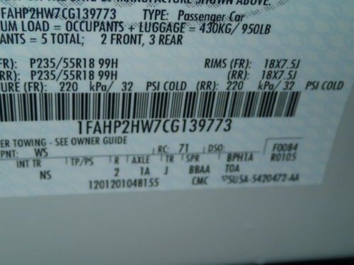 Hello you are bidding on a very nice damaged 2012 Ford Taurus SEL AWD with 15,500 miles. The car does starts and runs and drives. The car sustained damage to the right side and front of the vehicle. The vehicle is AWD vehicle. The car is going to need the following parts, front bumper cover, lower radiator support, right front door, both curtain bags,right front door panel, right fender, steering wheel, and misc clips and mounting hardware. The front rail both appear to be ok, on the right side were the door was pushed in it rolled a post and be post inward, they will need to be pulled and the fitted with new door. The interior is very clean. The engine runs great. The radiator, and ac condenser are both still holding fluids, but the bottom edge of them has cosmetic damage, but can be reused. The parts are available at car-part or on www ebay com fro great deals on new and used parts. Very nice car. The car is available for inspection please feel free to contact me at 502 817 2972 with any questions that you have. Car being sold as is damaged.