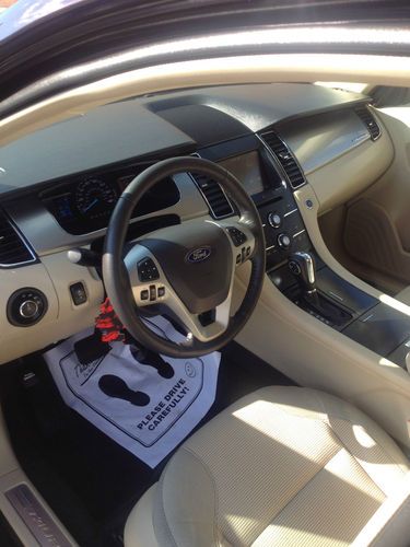This 2013 Ford Taurus is very clean and has only 2,164 actual miles on it. Its in perfect condition with no dents or scratches on it. All Power options are working with no problems. Engine and transmission are in perfect working condition. Also it has both keys as well. The exterior has a beautiful black and brown color. The interior is a tan. Cloth seats with power. Automatic headlights. Tires Still have 90% tread left with Aluminum Wheels. Touch Screen to control climate, entertainment and settings.