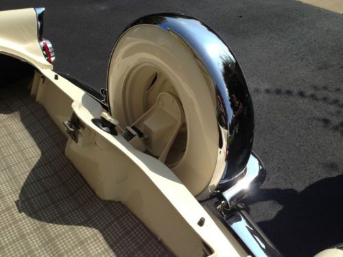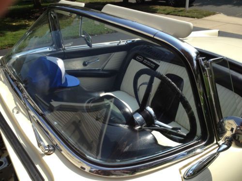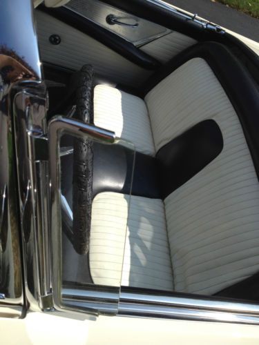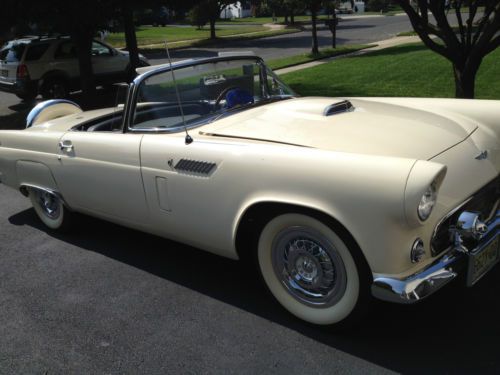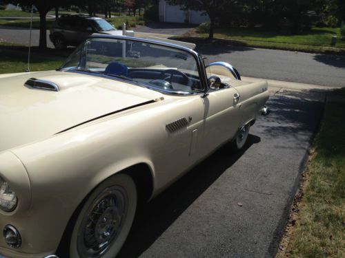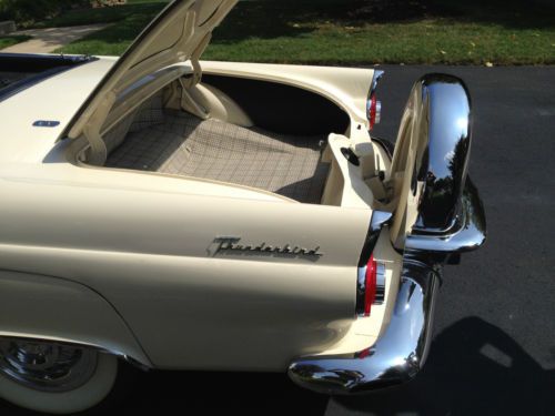 1956 Ford Thunderbird Original mileage on the odometer reads 66,244. “Colonial white” exterior with black interior. Comes equipped with both hard & soft tops, as well as a Continental spare wheel. This V8 T-bird has a 362 cubic inch engine with power steering, power brakes, automatic transmission, electric seat controls, power windows, port hole window in hard top, and a telescopic steering wheel column. It’s had one owner, since 1979, who has restored it over the years. All lead joints were checked and repainted. Frankford Plating in Philadelphia, Pennsylvania refinished all the chrome. Interior was also redone at that time. The engine was sent out and rebuilt to use non-leaded gas. Professionally appraised at $37,000. Appraiser’s document available for serious inquiries. Asking $29,500. |