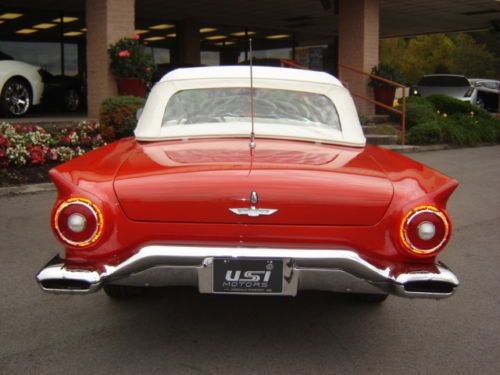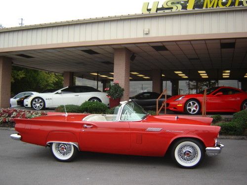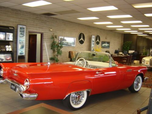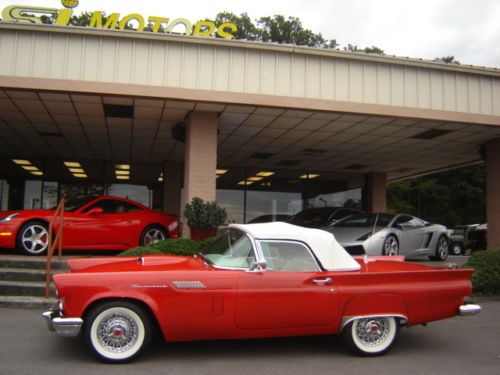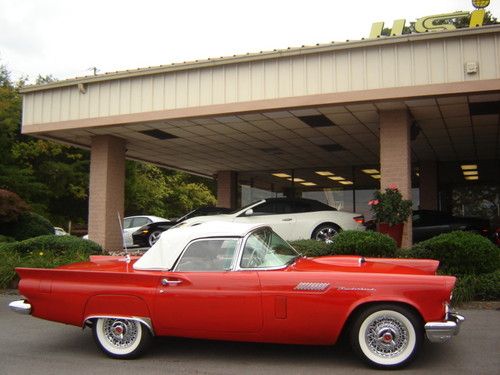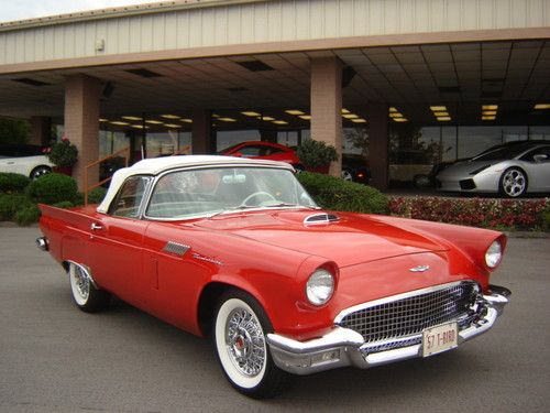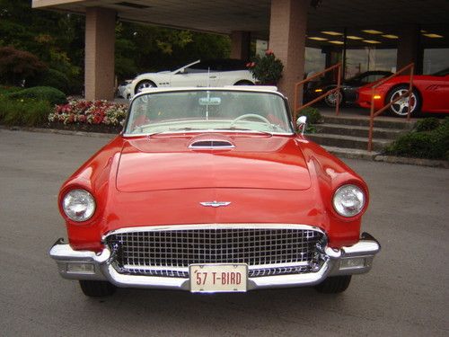 1957 Ford Thunderbird Torch Red with Colonial White Both Tops , Restored Original Texas Dry Climate , Ford-O-Matic Automatic Transmission , Town & Country Radio Rear Deck Antenna , Removable Porthole Hardtop , Local Trade in , An Investment Opportunity or For Every Day Drive .For more information please call Chris Hill @ (865) 690-3886 .