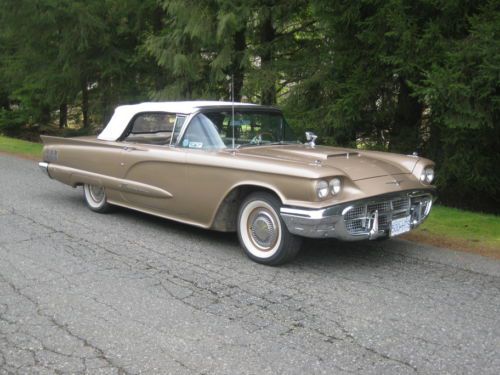 Bought this car from a collection in Dry Eastern Washington State USA, car is just wonderful throughout and drives like new,very original unrestored body with original paint, rare factory color,power steering and power brakes, all new brakes complete including master and lines,power seat and power windows, factory radio,new wide whitewall radial tires,full dish hubcaps,real factory leather interior in good condition, original trunk kit a bit worn but complete and intact,trunk and top parts all work perfectly,recent dual exhaust,numbers matching rebuilt to factory specs V* engine with Automatic transmission,good stainless and chrome, good glass throughout and all power windows work well.Bucket seats console with nice steering wheels and dash and all gauges working well.Priced to sell and is for sale locally and we reserve the right to end auction early if sold.Very low production numbers for the convertible in 1960 with only 10.516 units.Other nice rides coming to Ebay soon email me for more photos of this car and others.