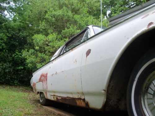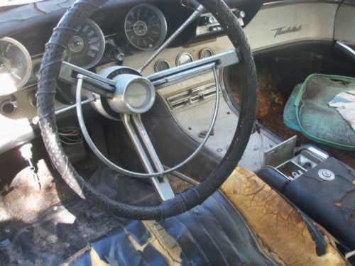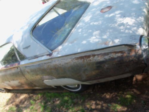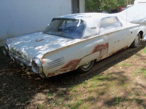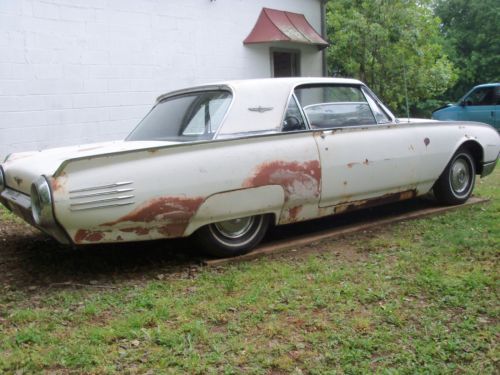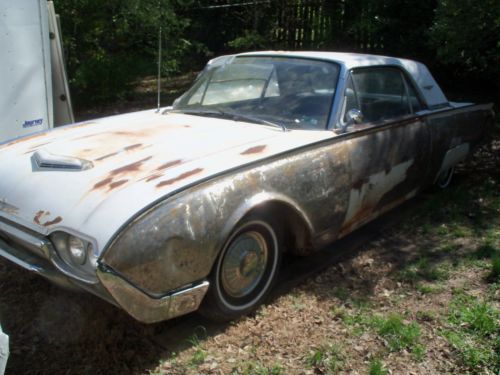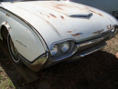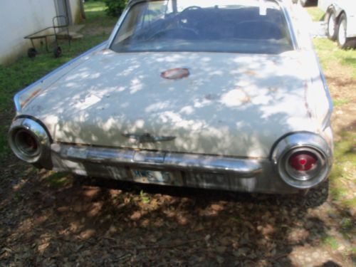 I HAVE HERE A 1961 FORD THUNDERBIRD ,(( listed for my father-in-law )),,, in it's orig. cond.,, for the most part,, V-8 ,,AUTO. TRANS. ,,ORIG. DRIVETRAIN ! ,,,car is in fairly strong cond.,,, floors are very very decent in car,,mostly surface type rust,, except ,,right front fender needs a small amount of work done,,left rear quarter area,, behind rear wheel,, needs small repair,, trunk area needs 2 areas of metal work done,,great foundation for the thunderbird enthusiast ,,61' is a very desirable year,all glass in car is very decent,, no cloudiness ,,or cracks,,,etc... he started sanding left side of car,,,,as u can see its fairly solid,, car has had a new tank put in,,and newer shocks,, with alittle work should run,,motor does turn freely,,he started to get to these things but health forces sale,,it is selling as a project car,, with needing restoration,,,and brakes are all up to stop,,,it does power up with a battery,,as in gauges & lights etc...,,,,tried to turn it over but,, think that the starter is not getting power to it,,so thats where it stands,,,great project for a neatly styled thunderbird,,, his loss your gain !,,,, title in hand,,,also has the swing away steering wheel,,etc.. buyer responsible for there own shipping,, i will assist with loading car,, $ 500.00 deposit due within 24 hrs. after auction ends,, balance due within 5 days after auction ends,, this is a 7 day auction,, thanks ! any ? feel free to call 770-249-2166
