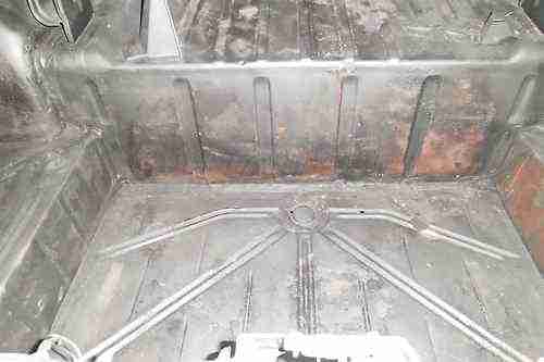 The car is believed to be numbers matching, and original mileage which is 65k. The underside is totally rust free and pretty damn clean. Nothing like what you would find here in Rhode Island. Trunk,floors,doors and fenders all appear to be solid as well. Looks like a few areas had repairs done at one time by him most likely but metal was used and welded in. He was trying to restore this and get it painted hence the car being mostly in primer. The car was originally a aqua green in color and its evidenced by the door jams, front chin under the bumper and a few other areas not primed.