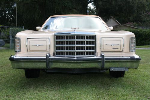 Don't miss a great opportunity to purchase this solid 1979 Ford Thunderbird Town Landau Coupe edition. This car comes equipped with all the goods: power windows, power locks, power seat and power mirrors. All interior power options work just as they should. The a/c was blowing "cool" air, but I wouldn't characterize it as cold (it may just need some freon). As you can see from the pictures, the interior of this car is immaculate. The seats are in great condition, and the car has definitely always been a non-smoking vehicle. The exterior paint on the vehicle is in good condition overall, but it does have some flaws that I've posted in the photos. One of these is an area of rust along the passenger's side front quarter panel. The other is some cracking in the paint along the rear quarter panel on the passenger's side, as well. Mechanically, this car is ready to be driven at any time to any where. It runs solid and smooth! The owner has recently replaced the tires along with adding a new gas tank, radiator, brakes, master cylinder and battery. The work has been done, and this beautiful Thunderbird is ready for you. The vehicle also comes with the original owner's manual. I am selling this vehicle for a local collector who is down-sizing his estate. Please let me know should you have any questions, and I'll be happy to respond. Thanks for looking.