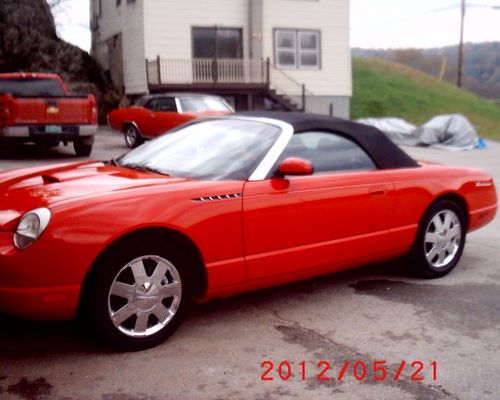 2002 ford thunderbird convt premium 2tone red/black leather carfax guarantee..