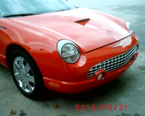 Here is my t bird I bought at auction with right front fender damage !THIS CAR IS MINT CONDITION AND SUPER CLEAN UNDERNEATH AND INSIDE,IT WAS FEMALE OWNED FROM DAY ONE!I,M A BODY MAN BY TRADE SO THE WORK ON THIS CAR WAS DONE RIGHT AND THERE IS NO SIGNS OF DAMAGE SHOWING ANYWERE! I TAKE ALOT OF PRIDE IN MY WORK AND CARS .THIS WAS AN EASY FIX AND WAS REPAIRED WITH FORD PARTS ONLY ,NO CHEAP AFTER MARKET PARTS,WHO EVER GETS THIS CAR WILL BE PROUD OF IT ,AND IT DRIVES LIKE NEW ,AS I HAVE BEEN TAKING IT ON WEEKEND TRIPS AND IT IS FUN TO DRIVE AND IT GETS 28 MILES TO GALLON ON GAS . IT COMES WITH BOTH TOPS ,THE HARD TOP IS STILL NEW WITH STORAGE BAG AND RACK TO PUT IT ON FOR STORAGE.THE TIRES ARE NEW ,NEW 4 WHEEL ALIGNMENT,THIS CAR NEEDS NOTHING IT CAN BE DRIVEN ANYWERE .I,M GOING TO SELL THIS CAR SO BID TO OWN, MY RESERVE IS LOW,(PLEASE DON,T ASK ,LET EVERYONE HAVE A CHANCE TO OWN IT) ,I,VE HAD MY FUN AND READY FOR MY NEXT TOY. THIS WAS A PEN NSYLVANIA CAR SO THERE IS NO SIGNS OF WATER RUST ANYWERE UNDER THIS CAR,NOW THE TITLE SAYS 33000 MILES AND WHEN I DID A CAR FAX ON CAR THATS WHAT I CAME UP WITH ,WHEN I GOT CAR THE AIR BAGS WERE DEPLOYED WHICH TOOK OUT SPEEDO AND WHEN THAT HAPPENS YOU HAVE TO CHANGE COMPLETE DASH ,SO NEW DASH WAS PUT IN AND MILEAGE READS WHAT TITLE SAYS ,WITH THAT BEING SAID I,M GOING TO BE HONEST AND SELL IT AS TRUE MILEAGE UNKNOWN SO EVERYONE IS ON SAME PAGE AND WE DON,T HAVE PROBLEMS AFTER SALE. SO IF YOU WANT ONE OF THESE AMAZING CARS AT A GREAT PRICE THEN THIS IS YOUR CHANCE! IF YOU NEED MORE INFO CALL ME I,LL DO EVERYTHING TO HELP YOU .I AM 30 MILES FROM OUR BIGGEST AIRPORT SO YOU CAN FLY IN AND I CAN COME GET YOU SO YOU CAN DRIVE IT HOME CALL DAN 802-2235066