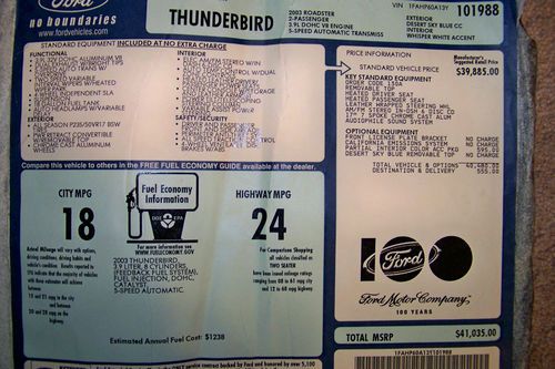 2003 Ford Thunderbird Base Convertible 2-door 3.9l on 2040-cars