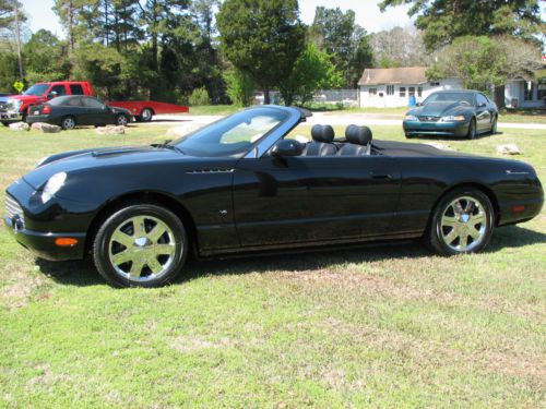 Thanks for looking at our special 2003 Ford T-Bird. It is fully loaded including Premium 2-tone leather seating, Stereo with CD, heated seats, chrome wheels, black power convertible top, and port hole hardtop with stand. It is in showroom condition with only 19K miles from new. We just did a service and changed all of the filters. The car still has the gorgeous original black finish, and the interior is super clean and has not been subjected to a smoker. The tires are good and this 2-seater is ready for your summertime cruising! We really like these last-generation T-Bird's. The make a super cruiser. They are very dependable, classy looking, fun to drive, and get great economy. Take care of it, and never lose money.... Tom Mack Classics has been buying, selling, and trading in quality collectible vehicles since 1980. We are located near Columbia, South Carolina. Fly in, we'll pick you up at the airport, and enjoy your drive home. We can arrange world-wide delivery and financing available to qualified buyers. Like all of Tom Mack Classics, this car is sold AS IS-WITHOUT ANY WARRANTY WHAT EVER. We welcome your personal inspection or you can use an inspection service if you are unable to come here. If you would like to see additional photos, please call me, and I'll take them as you request, and email to you. Call me on my cell at 803-351-3695 before 9:00 PM Eastern Daylight time. I'll be glad to tell you all of the details about this collectible Ford. Please no games. If you are unwilling to pay a $1,000 deposit on PayPal, please don't call. We have taken worthless cashiers checks, won't work, don't try. We have sold quite a few collector cars on EBay, call me, I'll sell it to you. You'll be glad... |