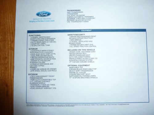 2004 ford thunderbird roadster both tops clean sporty and nice!!(US $14,990.00)