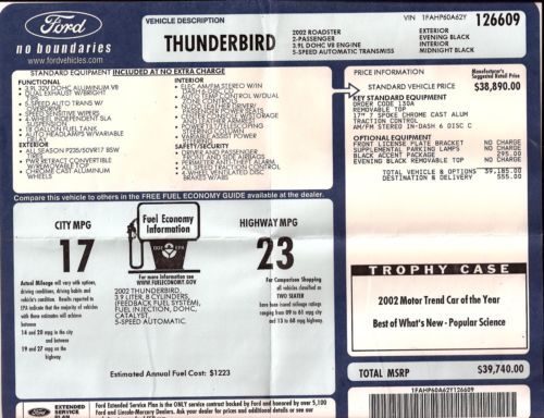 Red 2002 thunderbird.(US $16,500.00)