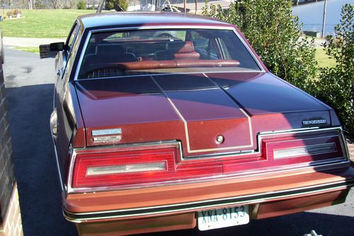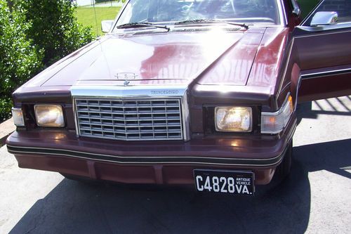 RARE 1982 FORD THUNDERBIRD.. HAS SMALL 4.2 V 8 ENGINE,,NEW TIRES,,NEW BATTERY, NEW BRAKES..NEW AIR COMPRESSER AND DRYER-COLD AIR,, MORE////,CALL FOR DETAILS..CAR HAS ONLY 47, 100 MILES ON IT ..HAS ORGINIAL PAINT.. VERY CLEAN INTERIOR.. VERY NICE INSIDE WITH NO TEARS OR BAD LEATHER,,VERY SOFT..ORGINIAL SPARE IN TRUNK..LOOKS GOOD ///DONT THINK THE PLUGS OR WIRES HAVE BEEN CHANGED?..FOR MORE INFO ON THIS RARE FIND///ONLY ONE THAT I KNOW IN THIS AREA...IF YOU NEED TO BE PICKED UP WHEN YOU PURCHASE THIS CAR I WILL PICK UP AT ROANOKE VA. AIRPORT... PLEASE CALL JACK @ 540-980-4509/// PRICE IS $5995 CASH AND DRIVE IT AWAY..... CALL.. 540-980-4509 THANKS JACK