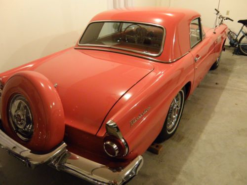Beautifully restored 1956 Ford Thunderbird with original Fiesta Red exterior and red and white interior. Has removable non-port top. New radial tires with wire spoke rims, original tires, rims, and hubcaps also come with car. New exhaust components and new side door panels with kick panels also come with car. Automatic transmission. Odometer reads 146,000. Free delivery up to 300 miles from Chattanooga, TN. Payment by certified check or cash. TN title at payment and verification of certified check. |