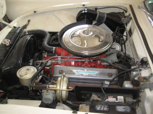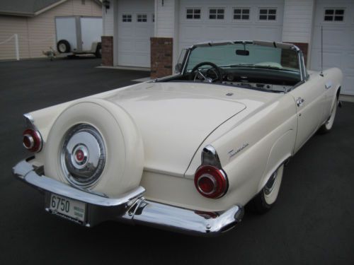 This is one very clean Thunderbird. Body is very straight, and paint is nice, with no dings or dents. Could be a very good repaint that shows very well. Chrome is bright, with no pitting, also could be re plated. Rear bumper was replaced with a new continental Kit, and it works as new. It's running brand new wide white radials, with factory hub-caps. A fresh alignment has just been completed so this car drives great. New power assist steering, also was added, as were new brakes. The 312 engine starts easy, runs strong, and is backed with the popular automatic transmission. The engine is the original numbers correct 312. With new water pump, new fuel tank, all new mufflers, and exhaust (through the bumper as they should be.) The interior is very clean, and looks great in it's black & white. The power seat works as it should. Dash is straight, with no sun bake. All gauges, trim, and bright work looks very nice, as dose the carpeting. The car has the convertible top cover behind the seat, and it looks good. The sun visors do need some repair as they have small splits in the seams. A very nice black soft top, with clear back window comes with, and this top has not been up very often. The hard top is extremity nice, with its port hole, and clean head liner.( Look at pictures) Paint is also excellent on the top, and the tops back window is Cristal clear. All car windows, and trim are good, with no chips or checking. The chrome is also nice. This car is a no rust ever car, as you can see by the pictures of the under side. There were no drips on the floor of the garage, so all seals look good, and engine is clean. This family state's they are the second owners, and they bought the car in Spokane Washington form the wife of the original owner. He bought the car new in Seattle, and gave it to his wife, who never drove it. The car was parked for meany years. Miles read 15,867 but we can not document them, so we are selling as miles unknown. I'm listing this nice little T-Bird for the family. Heath problems have forced this sale. This little Bird runs, and drives great. Comes with it's car cover, and original owners manuals. (It's ready for a new home.) Buyer is responsible for shipping, and all shipping costs. We will help with loading on our end, and in anyway we can. For questions please call Bill (208)750-0000 We reserve the right to close this auction at anytime. |