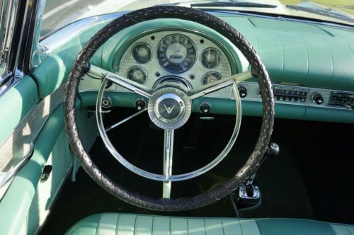 This car has been in the garage since 1978. It is a two owner car and we have just finished an extensive restoration which includes the following: A rebuild of the original 312 cu in v/8 engine rebuilt automatic transmission New radiator New battery Complete brake system upgrade New mufflers All chrome has been triple dipped New white wall radials ...And a beautiful new paint job! This is a 1950's classic t-bird this body style was only offered in 55-56 and 57 with the 57 being the most desirable. This car also comes with a hardtop with the porthole windows.. I own quite a few classic Cadillacs, hotrods and bikes, this rust-free beauty gets the most attention while driving around Santa Monica and Malibu! |