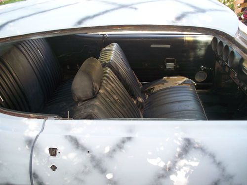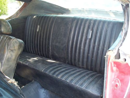 Clean Title, Pink slip in hand. This car doesn't come with an engine, transmission or radiator. Other than that, the car is mostly complete. Interior wise, the front seats need to be refurbished and carpet needs to be installed. Dashboard, backseats, and roof liner is all in good condition. As far as I can tell, the car comes with all the parts needed, like lights, chrome strips, all windows (in great condition, no cracks), etc. Exterior wise, the body is in pretty decent shape. Body work is not complete, but pretty close. Front end is currently dismantled, I purchased new bushings, shocks, and ball joints, but never installed them. This would be a great project for someone with the time to completely revive this classic.