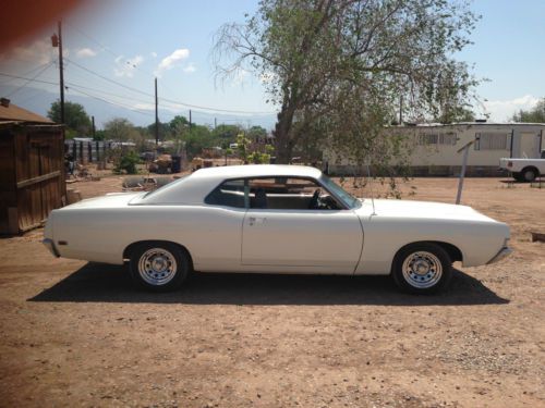 New water pump/belts/radiator/windshield/rear passenger wheel bearing and brake shoe, I have receipts for all but the windshield. I have the parts for the drivers side bearing and brake shoe. All windows work and are not cracked. Needs interior floor, headliner, door panels are intact but need upholstery. I have the dash pad that is not cracked. The seats are not pretty, but are not torn. All original, 351 Windsor 2bbl, numbers match. Engine has never been rebuilt. Needs the linkage to the trunk, so I keep the rear seat off to access the trunk. Has very little rust on motor firewall, and passenger floorboard.