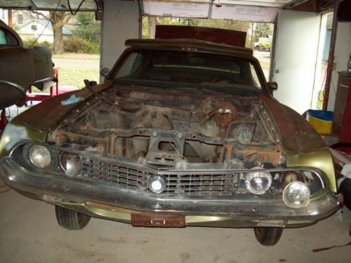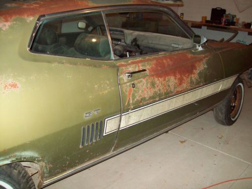 1970 Ford Torinio GT. You are bidding on a car with out a motor and transmission. The rest of the car is complete. The interior has been removed and all the moldings. It does have the GT hood which is also removed. The car needs a complete restoration including replacing both rear quarter panels and rear floor pans. The rest of the body is okay as far as rust but has some minor dents in the doors and fenders. There is a extra passenger side door as well. You are bidding as is and the winning buyer will pick up the car. Winning bidder needs to pay within 48 hours or make arrangments.