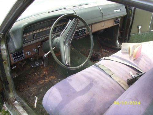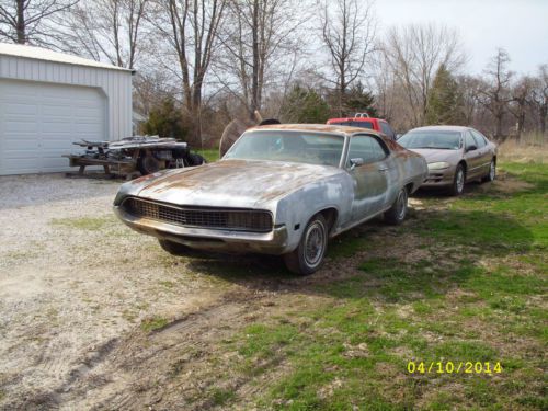 Up for auction is a 1970 ford torino brougham 2dr hard top project or parts car. This car has a lot of great hard to find parts on it. It has a 351c motor with auto trans and 9 inch rearend. The option on this car are power disc brakes, a/c, p/s, hideaway headlights, tinted glass, clock, remote drivers mirror, trunk light, brougham deluxe interior with no holes in the door panels front or rear. There is some rust on the body as you can see in the pic's but the floors and frame rails look good. All of the glass is good except the windshield it is cracked. There is no paper work on this car so you will need to file for new if you are going to rebuild it or you could just use it for it's many great parts. I will give a bill of sale on the car. The car rolls fine but the motor does not run. It has been parked for over 14 years. Any questions please ask or call 636 566 8081 thank you. A NON REFUNDABLE 50% DOWN PAYMENT DUE WITHIN 72 HOURS OF CLOSE OF AUCTION. |