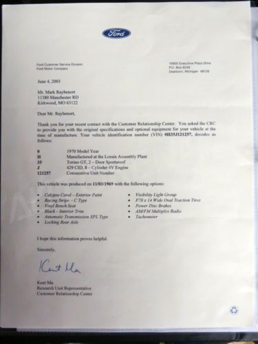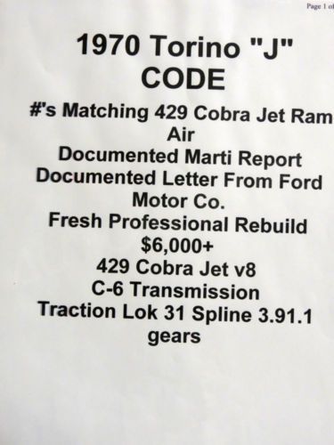 1970 Ford Torino Gt 2-door Sportsroof Rare J-code 429 Ram Air Engine Rebuild on 2040-cars