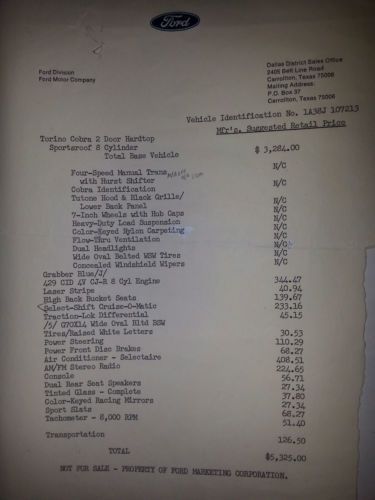 One of one. Original 1971 Cobra Jet 429. Special built car by Ford