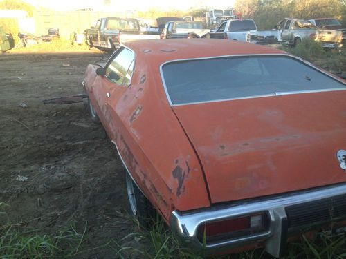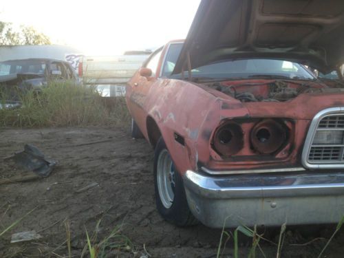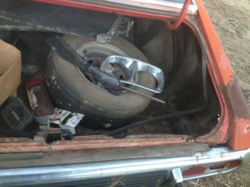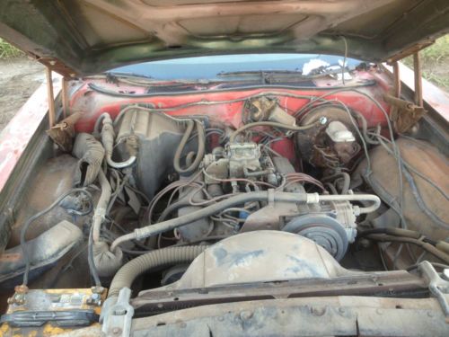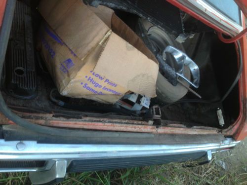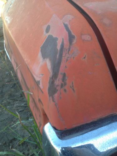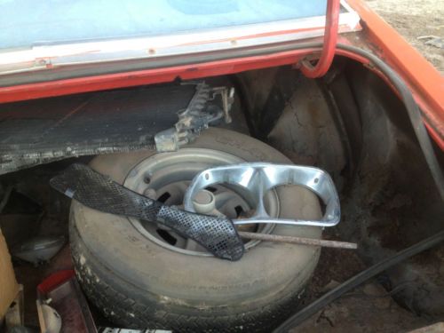 THIS CAR WILL START AND RUN BUT HAS LOUD KNOCKING NOISE. WAS TOLD THAT THE HARMONIC BALANCER IS BAD. HAVE NOT VERIFIED THIS FACT. WE FILLED THE CARB UP WITH FUEL AND THE CAR ACTUALLY WENT INTO GEAR AND MOVED AND HAD SOME BRAKES. WE DON'T KNOW WHICH ENGINE IT HAS, IT IS A SMALL V8 WITH 2BBL CARB AND AUTO TRANS WHICH ONE IS A ?. THIS CAR IS ROUGH AND HAS SOME RUST ON IT. TRUNK PAN IS SHOT,FLOOR PAN UNDER THE REAR SEAT HAS HOLES IN IT THE FRONT FLOOR PAN FEELS SOLID BUT NOT SURE IF THEY ARE WHAT I WOULD CALL GOOD. THERE IS DAMAGE TO BOTH REAR 1/4 PANELS BUT NOT BAD, THERE IS DAMAGE TO THE DRIVERS DOOR. ALL THE TRIM AND LIGHTS ARE SUPPOSED TO BE IN THE TRUNK BUT AGAIN WE HAVEN'T WENT THROUGH IT TO SEE. I REALLY DON'T KNOW MUCH ABOUT THIS CAR, I SAVED IT FROM THE CRUSHER THINKING THAT SOME ONE MIGHT NEED ONE. THIS IS BY NO MEANS A CAR YOU COULD DRIVE HOME BUT A GOOD CANDIDATE FOR RESTO. CALL SCOTTY FOR ANY INFO YOU MIGHT NEED @ 940-682-5838 9AM-5PM CENTRAL TIME