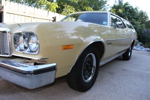 Very nice Gran Torino station wagon. Runs and drives well. Has new brakes, new suspension(shocks, springs, bushings) front and rear. Undercarriage has very light rust, the only bad rust is in the storage compartment under the back deck. Needs new headliner, seats are good, but there is a little wear and tear. Has new carpet and a new steering wheel. everything works with exception of A/C compressor and windshield wipers. Car did not have a wiper switch when I got it, I found one and it will operate the washer pump, but not the motor, I don't know if the wiper motor is good or not. Has 351 Cleveland with 2bbl carb. Starts easy, small leak on the valve covers gets little oil on the exhaust manifold causing a little smoke till the engine warms up. After engine has run and stopped, it will produce a little smoke when re-started, but goes away quickly. Odometer shows 116,000 plus miles. The paint is original, no bodywork has been done. Has a few dents and dings, all glass is good, rear window rolls down, but needs help going back up..sounds like a gear has worn out, electric motor is good.