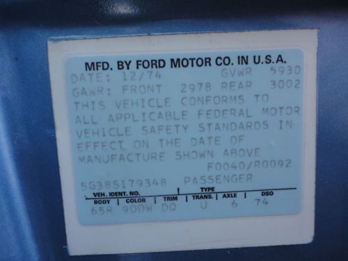 Okay, so now the hard part, trying to remember everything I've done to this car. Initially, the car was stripped down to the metal frame and all the rusty areas sand blasted. The original engine was a 400 CID 8-cylinder. Fortunately, an identical engine (recently rebuilt) was found in a junked vehicle and it's been running great ever since it was installed. Initially, I had a terrible time with the electrical ignition. The car would just quit running and wouldn't restart. I finally threw in the towel and installed an HEI distributor. I've NEVER had an issue since then with the car not wanting to start or keep running. I've had the seats reupholstered and the material is very durable and comfortable. I installed sound deadeners in the ceiling and floor before putting in new carpet and headliner. The old AM/FM radio was replaced with a CD player and 4 speakers. The front and rear bumpers were taken off and rechromed. All the wheel well moldings are original, not the sticky tape ones some people put on. I think I've obtained various parts from over 35 different Torinos in order to complete this one car. According to one website, there were only about 5,000 of these 1975 Gran Torino Sports produced which makes this particular model fairly scarce. Now for all the KNOWN issues with the car. The instrument panel is very dimly lit. I've replaced the headlight dimmer switch but the issue is the cloudy, nearly 40 yr old plastic bulb covers. They make new LED light kits for these panels now, I just don't want to invest any more money. Additionally, the temperature gauge does not work and the clock runs sporadically. I have an extra instrument gauge cluster and bezel that I will include (along with a car cover). I'm not sure if all the gauges work but chances are good that they do, and it's not hard to switch them out. Presently, a red warning light is illuminated on the instrument panel. This is either the parking brake or low fuel warning...my guess is the low fuel since I usually only keep about 1/4 tank of fuel in the gas tank. All other interior lights and buzzers work. There are some very tiny paint blisters on the top side of the passenger rear quarter panel. They are hard to see in the pictures but I tried my best. Also, underneath the passenger rocker panel, in front of the rear tire, is a bigger area (about the size of 2 quarters) of paint/rust blisters. None of these has caused the paint to crack yet. If the winning buyer is interested, a local paint and body shop has offered to repaint/repair this area along with the rear quarter panel at a cost of $25/hour for labor. Frankly, this is a fantastic price for labor but the only potential downside is that the new paint may not exactly match the old but the body shop will try to blend the colors to the best of their ability. This is another issue that I don't want to deal with but I will gladly provide contact info as well as getting the car to the shop if the buyer wants to do this. The air conditioner and heater/fan work fine. Sometimes you have to jiggle the knob a little before the compressor engages and the air conditioner starts to run. I do have an extra replacement switch assembly for the fan/heater/air conditioner. Other than what I have described, these are the only problems I know of. Any potential buyer needs to understand that this is an older FORD car, which is extremely COLD-NATURED. In order to properly start the car, you need to pump the gas peddle several times THEN turn the ignition. The RPM will reeve high for about a minute, then idle quietly once the engine gets warm enough. When starting the car with a HOT engine, you need to press the gas peddle to the floor, then turn the ignition. Any deviation from this will only run down the starter/flood the engine/or just cause unnecessary frustration. The engine DOES NOT diesel when you turn the ignition off. The carburetor is set for sea level, so please consider that if you live at a higher altitude. As far as I know, the car has roughly 150,000 miles on it. The original instrument panel (which has been thrown away) showed an odometer reading of around 47,000. Based on the condition of the car at that time, I believe it had turned over 100,000 miles. Since the rebuilt engine was installed, I've put about 3,000 miles on the car. The longest drives were from Pocatello, Idaho to Santa Rosa, California and from Santa Rosa to Pismo Beach and back. Usually about once a month, I take it out for a few miles just to run the engine and work the transmission. I have seen no drops or puddles of oil or transmission fluid on my garage floor. The car has been kept in a garage for the last 3 years and under a car tarp for the time before that. I think that is everything for now. If I think of anything else to add, I will post it here. If you need pictures of anything, please ask and I will post them as soon as I can. My understanding from eBay is that a potential buyer can request and pay for a vehicle inspection BEFORE the auction ends. I would STRONGLY recommend this!!!!! Not that I have any doubts the car will pass a thorough inspection, but if the buyer cannot physically be present to check out the car, this is the only way to be certain of what you are buying. I'm requiring a $200 NON-REFUNDABLE deposit 48 hours after the end of the auction. IF YOU'RE NOT SERIOUS ABOUT BUYING THIS CAR, DON'T WASTE MY TIME OR YOURS!!!! Go buy a cheap toy and play with it instead. ATTN: CALIFORNIA BUYERS - You do NOT have to SMOG this car, the cutoff is 1976. The vehicle is permanently registered in Montana, so you must consider any transfer fees and costs to register this car in your own state. I will be keeping the plates! I have a clear title with NO LIENS! No surprise, but this is an AS IS SALE!!!!!!!! I cannot guarantee anything. ANY QUESTIONS/CONCERNS/ETC, EMAIL ME OR POST ON THE LISTING. I will thoroughly and honestly answer anything! I HAVE A PERFECT eBAY RATING and have been on this site since the