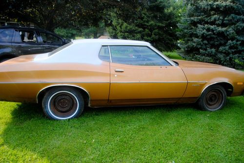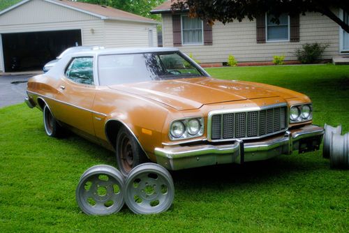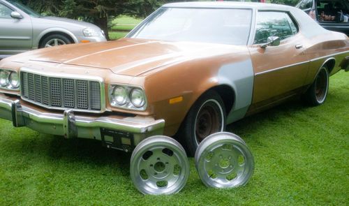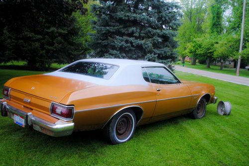 This torino has a 1984 351W under the hood with reconditioned heads,all new gaskets,new timing chain and gears,new cap and rotor,new plugs and wires,reconditioned exhaust manifolds plus hardware,new water pump,rebuilt carb,new oil pump,new A frame bushings,and front shocks,all new brake lines under hood,new gas tank plus sending unit,newer front brakes. Some body work has been started but needs finished. All in all pretty solid car. Perfect for that Starsky & Hutch Clone !!!