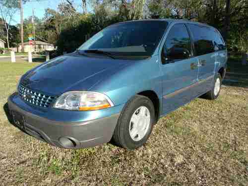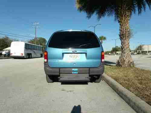 VERY NICE 2001 SKY BLUE FORD WINDSTAR LX UP FOR AUCTION.. THE REAR RAMP IS 30 1/2 INCHES WIDE....THIS IS A RUST-FREE FLORIDA VEHICLE WITH A REAR WHEELCHAIR RAMP CONVERSION DONE WHEN NEW. THIS VAN HAS BEEN PRIVATELY OWNED AND GENTLY USED ALL OF IT'S LIFE. SOME OF THE FEATURES ARE: FRONT AND REAR AIR AND HEAT WHICH WORK EXCELLENT. (THE REAR HEAT AND AIR HAS SEPARATE CONTROLS IN THE BACK) THE RAMP IS MANUALLY OPERATED AND CAN BE DEPLOYED OR RETRACTED SO EASILY IT CAN BE DONE WITH ONE FINGER. THIS VAN IS RUSTFREE AND PERFORMS GREAT. THE MOTOR IS CLEAN AND RUNS SMOOTHLY AND THE TRANSMISSION WORKS PERFECTLY. I HAVE PERSONALLY DRIVEN THIS VEHICLE FOR 2,000 MILES RECENTLY AND IT RUNS GREAT AND GETS 23 MILES PER GALLON OF REGULAR GASOLINE. THE WHEELCHAIR AREA IS EQUIPPED WITH Q-STRAINT AUTOMATIC TIE DOWN MECHANISMS WITH BUILT IN SAFETY STRAPS AND IT IS EASY TO LOAD AND SECURE A WHEELCHAIR PASSENGER....VAN ALSO TRANSPORTS POWER CHAIRS AND LARGE SCOOTERS. THE ORIGINAL PAINT JOB IS IN BEAUTIFUL CONDITION... ONLY A FEW MINOR IMPERFECTIONS. VAN IS LOCATED NEAR GAINESVILLE FLORIDA, WITH FREE DELIVERY WITHIN 100 MILES OF GAINESVILLE. VAN ALSO CAN BE SHIPPED ANYWHERE AT BUYERS EXPENSE. WINNING BIDDER AGREES TO PAY A $500.00 DOWN PAYMENT WITHIN 48 HOURS OF THE END OF THE AUCTION. BALANCE IS DUE WITHIN 7 DAYS OF END OF AUCTION. FULL PURCHASE PRICE MUST BE PAID IN FULL BEFORE THIS VEHICLE WILL BE SHIPPED. VAN IS SOLD "AS IS" BUT GUARANTEED TO BE MECHANICALLY SOUND AND ACCURATELY DESCRIBED THANKS FOR LOOKING. PLEASE ASK ANY QUESTIONS BEFORE BIDDING. WILL ACCEPT ANY AND ALL FORMS OF PAYMENT INCLUDING CREDIT CARDS, CHECKS, AND WIRE TRANSFERS. GOD BLESS ALL WHO READ JOHN 3:16 AND REPENT AND BELIEVE!