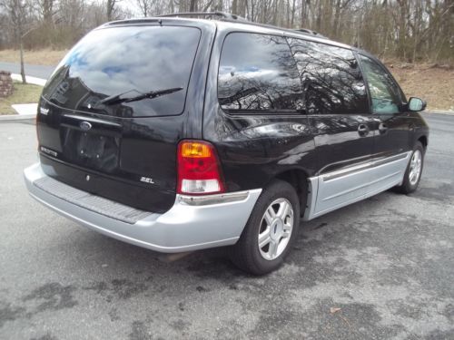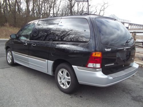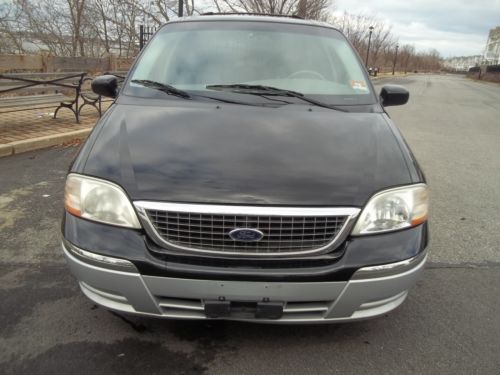 JUST TRADED AND UP ON THE BLOCK IS THIS SUPER CLEAN, WELL MAINTAINED 2001 FORD WINDSTAR SEL. THE BODY OF THE IS WINDSTAR IS IN EXCELLENT SHAPE. THE BRILLIANT BLACK PAINT HAS A SHOWROOM LUSTER AND THE BODY IS REAL CLEAN. THE INTERIOR OF THIS WINDSTAR IS IN EXCELLENT CONDITION AS WELL. THE RUGS, DASH , DOOR PANELS AND HEADLINER ARE IN EXCELLENT SHAPE AND THE LEATHER SEATS ARE IN FINE SHAPE WITH JUST MINIMAL WEAR ON THE DRIVERS SEAT. THE POWER SLIDING DOORS OPERATE PERFECTLY AND ARE A PLEASURE TO HAVE. ALL POWER OPTIONS WORK AS THEY SHOULD AND THE ENTERTAINMENT SYSTEM WORKS PERFECTLY AS WELL. MECHANICALLY, THIS WINDSTAR IS IN VERY GOOD CONDITION. THE 3.8 V6 RUNS SMOOTH AND QUIET AND HAS PLENTY OF POWER. THE TRANSMISSION SHIFTS EFFORTLESSLY. THE CHECK ENGINE LIGHT SOMETIMES COMES ON AND OFF AND THE CODE SAYS FAULTY EGR VALVE. THIS WINSTAR HAS 4 BRAND NEW TIRES MOUNTED ON FACTORY CAST ALUMINUM WHEELS AND NEW BRAKES ALL AROUND. I HAVE ALL THE BOOKS, CLEAR TITLE AND 1 KEY WITH THE FACTORY REMOTE. HE IS YOUR CHANCE TO TREAT YOURSELF AND YOUR FAMILY TO A NICE CLEAN MINI-VAN IN EXCELLENT SHAPE. PLEASE EMAIL ANY QUESTIONS OR CALL ME AT 917 450 5145. SHIPPING IS THE RESPONSIBILIT OF THE BUYER. I CAN ASSIST IN PICK UP AT NEWARK INTERNATIONAL AIR PORT OR DROP OFF AT THE LINDEN DAS PORT FOR SHIPPING. I REQUIRE A $500.00 DEPOSIT IN 24 HOURS AND THE BALANCE IN CASH, CERTIFIED FUNDS OR WIRE TRANSFER WITH IN 7 DAYS. THANK YOU AND GOOD LUCK BIDDING!!