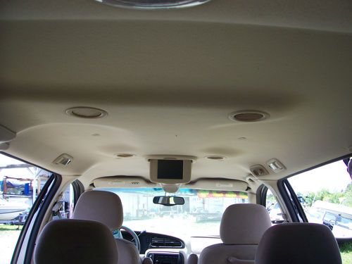 Power steering, brakes, dual AC that works, power mirrors, locks, cruise, tilt,rear defroster, power adjustable pedals. DVD player is built in and cassette holder is in console. Has overhead console, rear controls for radio and DVD player, roof rack, factory mag wheels and excellent tires. Has AM -FM stereo casstte CD player. This is one excellent running , driving van and is very pretty.