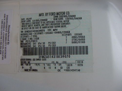 2002 ford windstar sel mini passenger van 4-door 3.8l needs transmission.