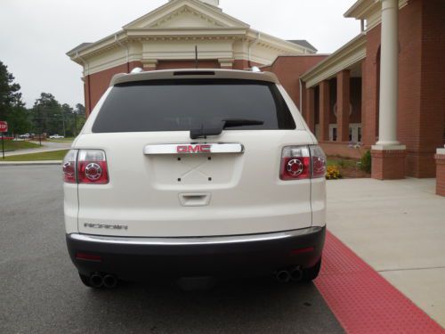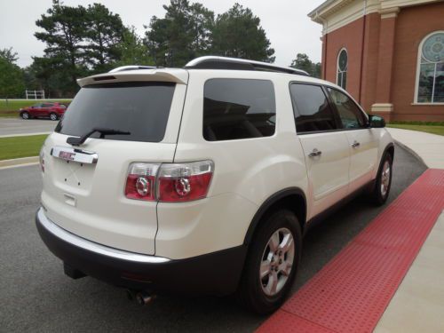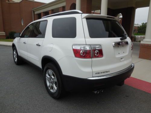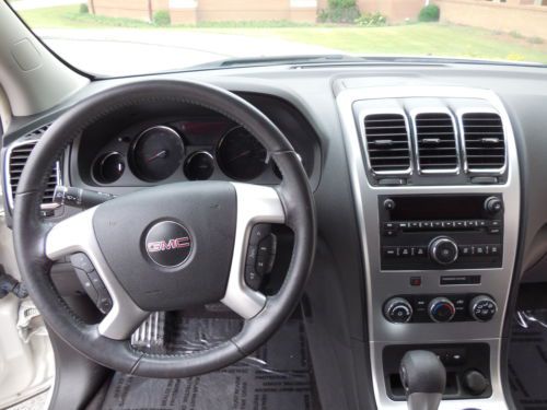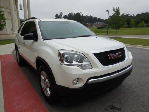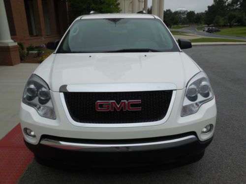 FOR SALE IS A ONE OWNER 2009 SUMMIT WHITE ON LIGHT TITANIUM (GRAY) GMC ACADIA SLE WITH ONLY 100K MILES! IT COMES WITH A CLEAN HISTORY REPORT(SEE ATTACHED) WITH A RATING OF 90 THROUGH AUTOCHECK. ALL RECENT SERVICE HAS BEEN COMPLETED ALONG WITH A FRESH OIL CHANGE AS THIS VEHICLE IS ALL READY TO GO! THE EXTERIOR IS FREE OF ANY DINGS/DENTS OR MAJOR SCRATCHES. THE INTERIOR HAS NO RIPS/TEARS IN THE SEATS OR STAINS IN THE CARPETS. BOTH SETS OF KEYS ARE PRESENT ALONG WITH THE BOOKS AND RECORDS. IT COMES EQUIPPED WITH THE SIRIUS RADIO AND THIRD ROW SEATING. THIS VEHICLE HAS BEEN WELL CARED FOR AND THE PHOTOS SHOW IT. WE WILL GUARANTEE THE LOWEST PRICE IN THE COUNTRY(SIMILAR MILES/CONDITION) OR WILL BEAT IT BY 100.00. PLEASE CALL 706-737-1148 WITH ANY QUESTIONS. THIS VEHICLE COMES WITH A 90 DAY POWERTRAIN WARRANTY! SPECIFICATIONS Exterior Measurements