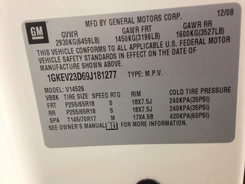 11 acadia denali navigation sunroof fwd 3rd row seat