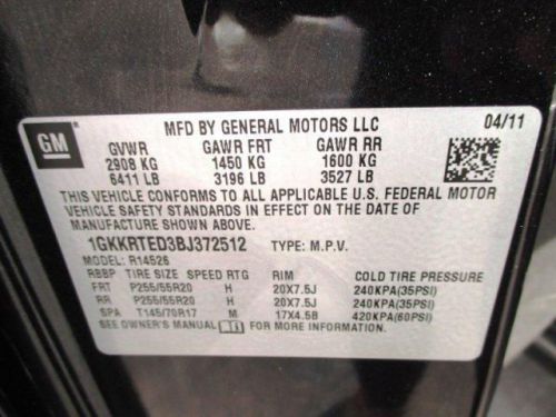 VIN (Vehicle Identification Number): 1GKKRTED3BJ372512