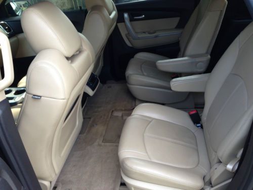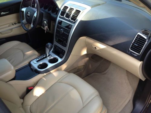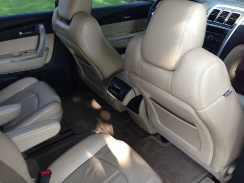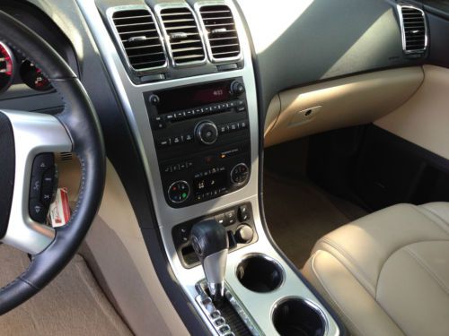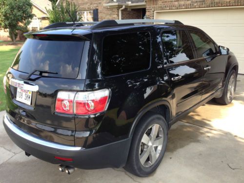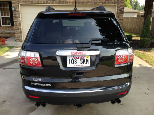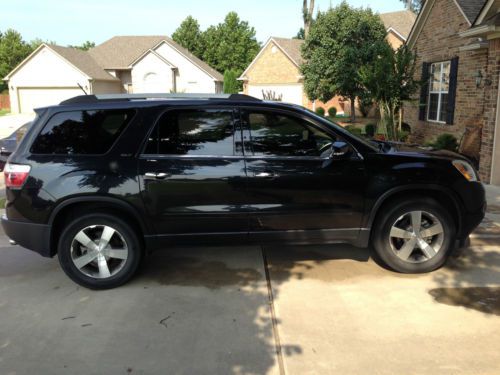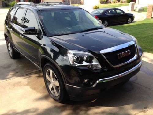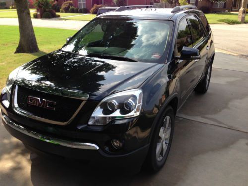 Selling 2011 Black GMC Acadia SLT FWD, 3.6L V6 Engine, Automatic Transmission, Fog Lights, Alloy Wheels, Roof Rack, Rear Defroster, Power Signal Mirrors, Spoiler, Reverse Sensing System w/Rear View Camera, Tan Leather Seats, Front Power Heated Bucket Seats, 2nd Row Captain Bucket Seats, 3rd Row 60/40 Split Bench Seat, Power Liftgate, Power Windows/Locks, Auto Headlamps, Leather Wrapped Steering Wheel, Cruise Control/Tilt Wheel, Dual Zone Electronic Auto Climate Control, Rear Climate Control, Traction Control, OnStar, Garage Door Opener, CD/MP3 Player, Satellite Radio, Bose Audio, Remote Start, and Bluetooth. Vehicle is in great condition, a few door dings but no other problems with exterior or mechanical, never been smoked in. Vehicle is fully loaded. Features