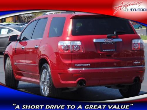 ***WHOLESALE PRICED*** AWD, Ebony w/Perforated Leather Seating Surfaces Seat Trim, AT HYUNDAI LOT!!, CLEAN CARFAX 1-OWNER!!, LIKE NEW CONDITION, NAVIGATION, REAR ENTERTAINMENT, and REMAINDER OF FACTORY WARRANTYS. GMC has outdone itself with this gorgeous-looking 2012 GMC Acadia. It just doesn't get any better at this price! With plenty of passenger room, you won't have to worry about being cramped when it's more than just you in the SUV.
