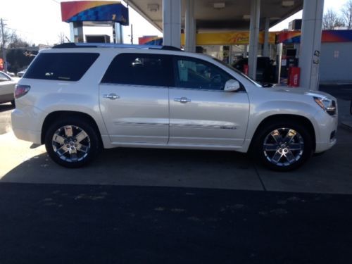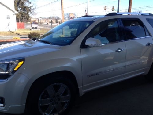 THIS 2013 GMC ACADIA DENALI IS IN ABSOLUTE PERFECT CONDITION INSIDE AND OUT! ONLY 7900 1 OWNER, CARFAX CERTIFIED MILES. FINISHED IN WHITE DIAMOND WITH EBONY BLACK LEATHER INTERIOR, DVD, NAVIGATION, POWER EVERYTHING, MOON ROOF, 3RD ROW SEAT, UPGRADED 20" CHROME WHEELS, BACK UP CAMERA PLUS EVERY OTHER OPTION THAT WAS AVAILABLE. THIS IS THE MOST FULLY LOADED ACADIA DENALI YOU CAN GET! WE ARE THE ORIGINAL OWNERS. IF INTERESTED, PLEASE CALL 267.767.2110. I WILL NOT ACCEPT ANY OFFERS WITHOUT TALKING TO THE BUYER FIRST.