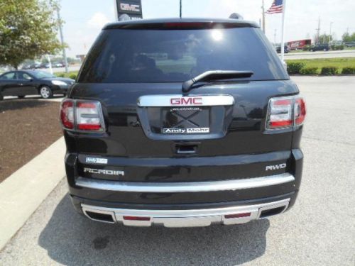 AWD! GMC FEVER! Be the talk of the town when you roll down the street in this outstanding 2014 GMC Acadia. This fantastic GMC Acadia is just waiting to bring the right owner lots of joy and happiness with years of trouble-free use. It is nicely equipped with features such as Denali Specific Acoustic Insulation Package, Technology Package (Head-Up Display, High-Intenstity Discharge Projector Low Beam Headlamps, and Rear Cargo Area Audio System Controls), Trailering Equipment (Heavy-Duty Cooling System and Trailer Hitch), 10 Speakers, 2-Position Memory For Driver's Seat Adjuster, 3.16 Axle Ratio, 3rd row seats: split-bench, 4-Wheel Disc Brakes, 7-Passenger Seating (2-2-3 Seating Configuration), 8-Way Power Driver Seat, 8-Way Power Passenger Seat Adjuster, ABS brakes, Air Conditioning, Alloy wheels, Auto-dimming door mirrors, Auto-dimming Rear-View mirror, Automatic temperature control, Blind spot sensor, Body-Color Moldings w/Chrome Insert, Bodyside moldings, Bose Premium 10-Speaker Audio System, Brake assist, Bumpers: body-color, CD player, Delay-off headlights, Denali Specific Body-Color Rocker Molding, Driver door bin, Driver vanity mirror, Dual front impact airbags, Dual front side impact airbags, Dual SkyScape 2-Panel Power Sunroof, Electronic Stability Control, Emergency communication system, Four wheel independent suspension, Front anti-roll bar, Front Bucket Seats, Front Center Armrest w/Storage, Front dual zone A/C, Front fog lights, Front reading lights, Fully automatic headlights, Garage door transmitter, Heads-Up Display, Heated & Cooled Front Seats, Heated door mirrors, Heated front seats, Heated Power-Adjustable Outside Mirrors, High-Intensity Discharge Headlights, Illuminated entry, Inside Rear-View Auto-Dimming Mirror, Leather Shift Knob, Leather steering wheel, Leather-Wrapped Steering Wheel w/Wood Trim, Low tire pressure warning, Memory seat, MP3 decoder, Occupant sensing airbag, Outside temperature display, Overhead airbag, Overhead console, Panic a Are you looking for a new car, truck, or suv?? We stock over 500 new!! Shop at Indiana's largest Buick, GMC dealer, Andy Mohr Buick, GMC, Fishers Indiana. We have been in business 18 years and great pricing and satisfied customers is what we do best!! We want your business and will do whatever we can to earn it!! Shop Indiana's largest Buick GMC dealer, Andy Mohr Buick GMC!!
