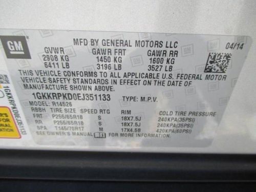 VIN (Vehicle Identification Number): 1GKKRPKD0EJ351133