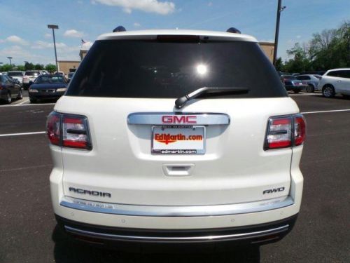 The 2014 GMC Acadia personifies a never say never attitude with its flexible, accommodating space and functionality. Featuring distinctive, bold lines, a confident stance, the Acadia comes with aluminum wheels and automatic on/off headlamps. Body color moldings keep a sleek uniform look. Additionally, there are roof-mounted luggage rails to make family outings as convenient as possible. The interior of the Acadia features attractive trim accents and a soft instrument panel wrap, as well as soothing ambient lighting accents. Additionally, there is underfloor storage behind the flat-folding third row. Rear Park Assist aids by providing audible warning sounds as the rear of the vehicle approaches an object. That, combined with a Rear Vision Camera, makes those complicated parking situations a breeze. A USB port allows you to connect a supported music device for your listening pleasure. All 2014 Acadia models now include two USB ports on the rear of the center console for charging phones and other portable devices. The Acadia is driven by a 3.6L V6 Engine capable of 288 hp at 6300 rpm. Plus, the torque is more than enough to handle a small boat or trailer. The Acadia also affords you the option of a 6-speed AWD automatic transmission or a 6-speed FWD automatic transmission. The dual exhaust allows for an even exhaust flow and are intentionally turned down to prevent any protrusion from the body. The Acadia gives you the extra peace of mind with its host of safety features. An array of air bags protects you from all angles. The StabiliTrak system aids in driving in low traction situations, to keep you in control at all times. The 4-wheel antilock disc brakes grant you the stopping power that you need. Finally, a tire pressure monitoring system keeps you informed via the instrument panel, so you never have to second guess when it is time for a refill.ENGINE 3.6L SIDI V6 (288 hp [214.7 kW] @ 6300 rpm 270 lb-ft of torque [364.5 N-m] @ 3400 rpm) (STD), SUNROOF DUAL SKYSCAPE Pricing includes destination, optional equipment and reflects manufacturer incentives. We pride ourselves in having an upfront, completely transparent purchase process. Nothing hidden and no surprises! Our goal, to create an automotive buying experience that will last a lifetime. Our hope, you will share your Ed Martin Experience with others. Sincerely, Ric McCoy General Manager