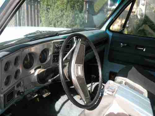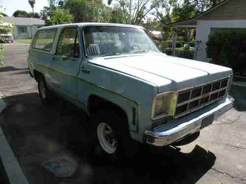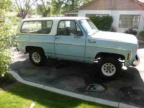 I bought this from nieghbors... He has had it for a very long time. His health declined to where this vehicle became un used... I know it looks bad but it is a lot better then it looks. He and his wife are former teachers...Great ppl and wonderful neighbors. This was his truck he used for work for years... After they retired they used this to go to there summer home in the South Lake Tahoe area. Again I KNOW it looks bad but it runs great. I have only had it about 2 months. I WAS going to build a monster k5 out of it. I fell into another k5 that was way further along and bought it and now I am in the process of building THAT into the monster THIS was going to be..... Anyhow ...I don't need two. I didn't do ANYTHING to this one except register it in my name. I have the pink free and clear. I have driven it only a couple times and it is a very strong runner. Starts right up Choke works fine. This is a 1975 so if your looking for a great running 4x4 that you don't ever have to smog your looking at it. It runs great but it is also Smog Exempt! This engine is not the original it has a 350 in it and it has only about 15 k on it. If you don't know this... this is the LAST year that the whole top comes off. Has the original roll bar so you can tarp up a cab and tie it down looks great and fun to do in the summer. Has a receiver for towing. Swing out tire carrier and Jerry can holder. I don't have the Jerry can I asked if they still had it but he said it was long gone... I have not had it long but I know this is a good choice for a few reasons... Smog Exempt.... Runs great. Can be built into a wicked lifted fun truck. If your into that this is perfect. Its also good for ppl who drive in snow ice or dirt roads from time to time. Or everyday... No non op here.... This is ready to go. Fresh Tires... Brakes seem great. Steering is easy. Its body is what it is average for its age 38ish... I know it has been used ... loved and maintained....Its been a wonderful truck for years and still has a lot of life left in it.