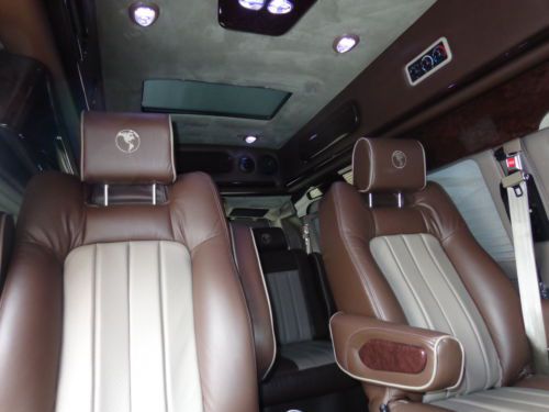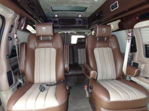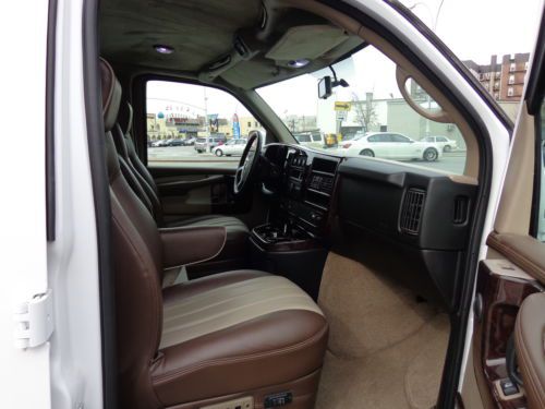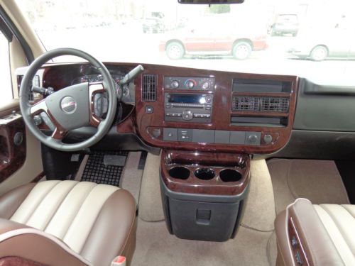 HERE IS A LOADED 2014 GMC SAVANA CONVERSION VAN. THIS VAN IS HARD LOADED WITH ALL THE TOYS FOR A FAMILY OR JUST FOR BUSINESS TRAVEL. IT HAS A 6.0 L ENGINE, AUTOMATIC TRANS, POWER WINDOWS AND DOORS, WRAP AROUND GROUND EFFECTS, LEATHER HEATED FRONT SEATING, BACK UP SENSORS, USB CHARGING PORTS, 27 IN. SAMSUNG HDTV WITH BLU RAY PLAYER, LED INTERIOR LIGHTING, POWER RECLINING FRONT SEATS, POWER LUMBAR FRT SEATING, POWER SLIDING REAR SOFA, POWER SUNROOF, LEATHER STEERING WHEEL WITH CONTROLS, MONOGRAM DOOR HANDLES, HID CEILING LIGHT PANEL, LIGHTED DRINK HOLDERS, POWER 6 WAY PEDSTAL CAPTAIN CHAIRS REAR, POWER REAR MASSAGE SEATING, HEATED REAR SEATING, POWER RECLINING CENTER REAR CHAIRS, HEATED REAR SEATING, POWER LUMBAR SUPPORT REAR CHAIRS, 2 BACK TRAY FOLD UP TABLES, ULTRA SUEDE INTERIOR, HEATED SOFA BED, BAR WITH FRIDGE PARTITION WALL INTERCOM SYSTEM,SUBWOOFER, BACK UP CAMERA, PARK DISTANCE CONTROL PLUS SO MUCH MORE!!!!WE PRIDE OURSELVES IN HAVING THE CLEANEST CARS AROUND. YOU MUST SEE THEM TO BELIEVE IT. E-MAIL US OR COME ON DOWN TO LOOK AND MAKE US AN OFFER TODAY!!!!
