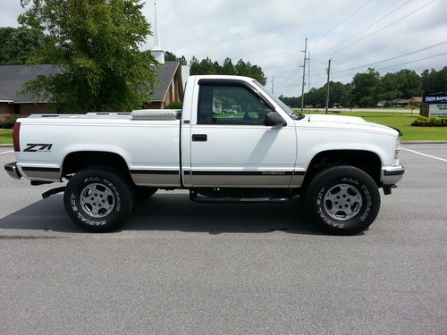 There is 30,000 on new 5.7L engine. Automatic transmission has 8,000 on fresh rebuild. Has new brakes on the front and rear. The front suspension has been rebuilt (new balljoints, tie rod ends, pitman and idler arms, etc.) Has new air conditioning system. Has 35 inch all terrain tires mounted on chrome factory 2000 Silverado 16 inch wheels. Has a 3 inch body lift so tires won't rub. Has power windows, power door locks, factory cassette radio with cd attachment.