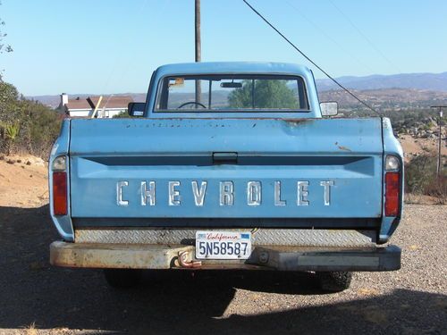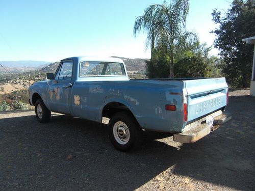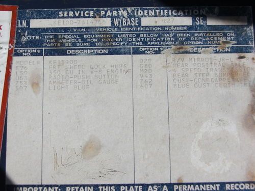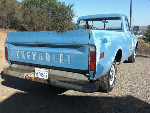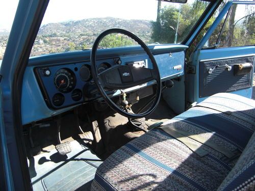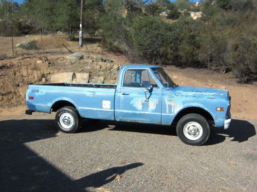 4 speed manual transmission. Edelbrock carb, factory positraction rearend. Truck is missing the front drive shaft. Truck has no title, sold with a bill of sale only.